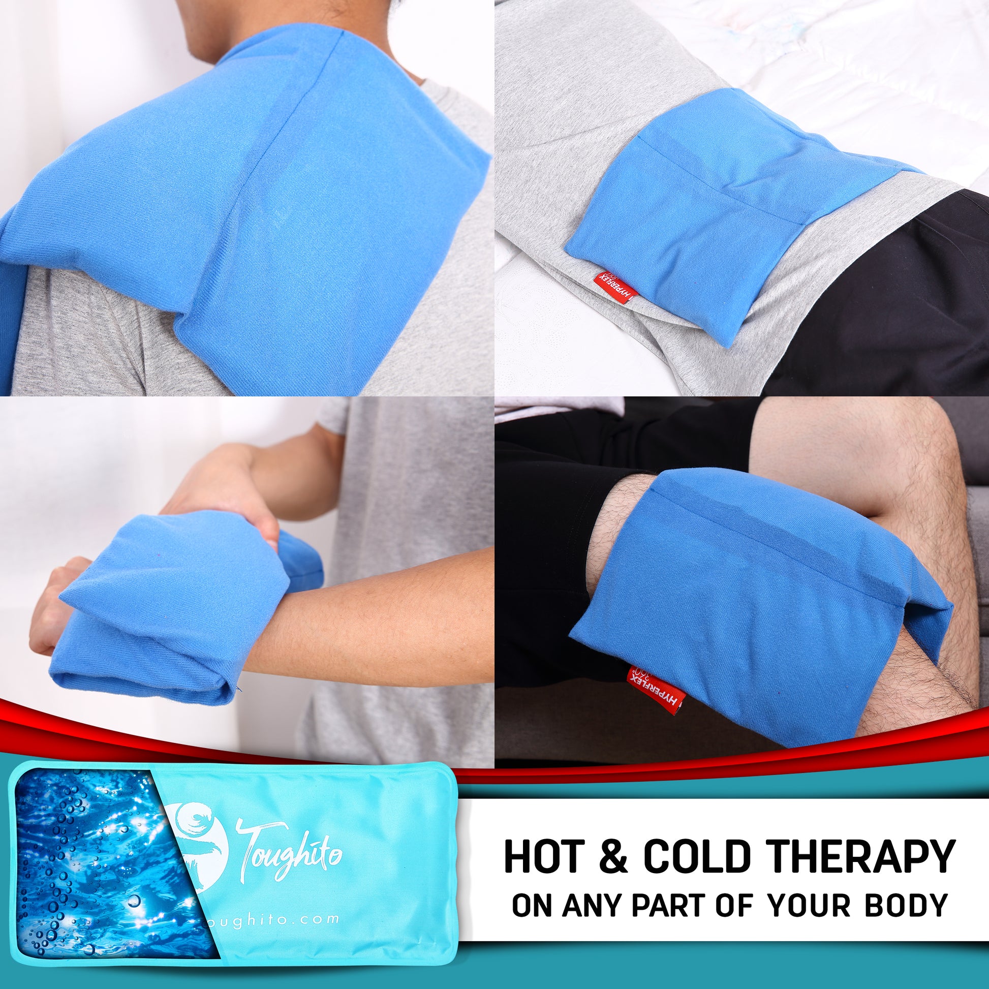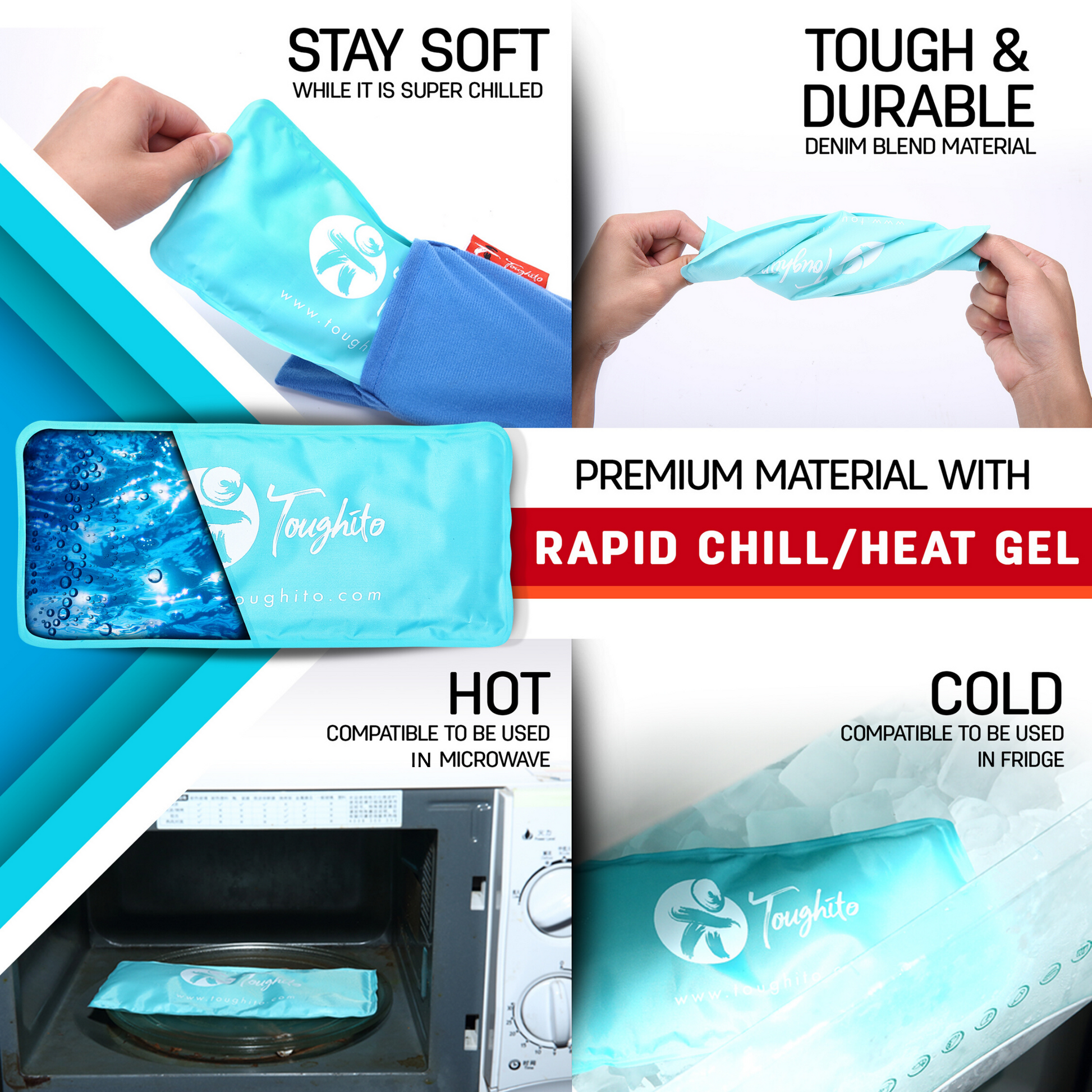 - ✅ PREMIUM ICE BAG MATERIALS: Toughito Hyperflex360 gel ice pack offer the finest denim blended materials. It could withstand exceptional temperature either hot or cold. Unlike other gel ice packs, It retains its shape even when it is hot. No leak No breakage guarantee.